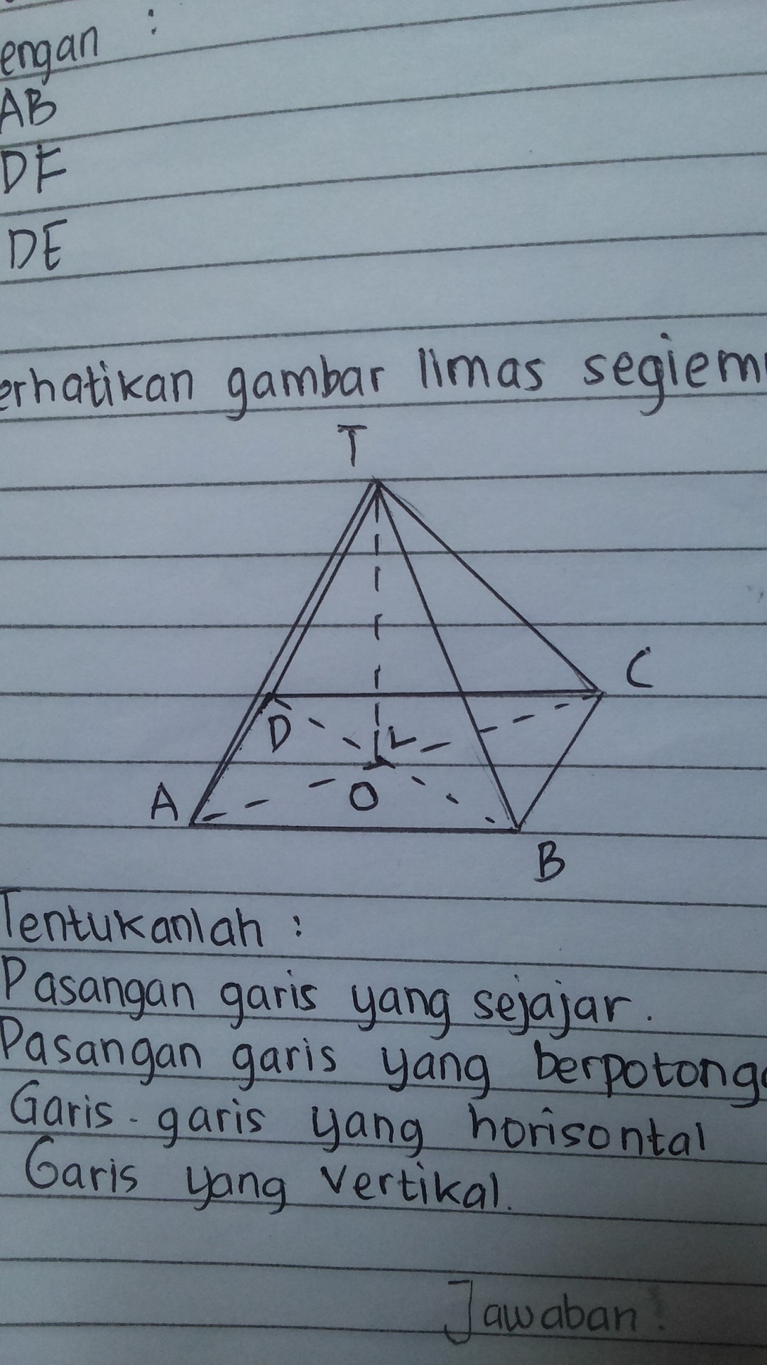 Sebutkan pasangan garis mana sajakah yang saling sejajar dan berpotongan?
